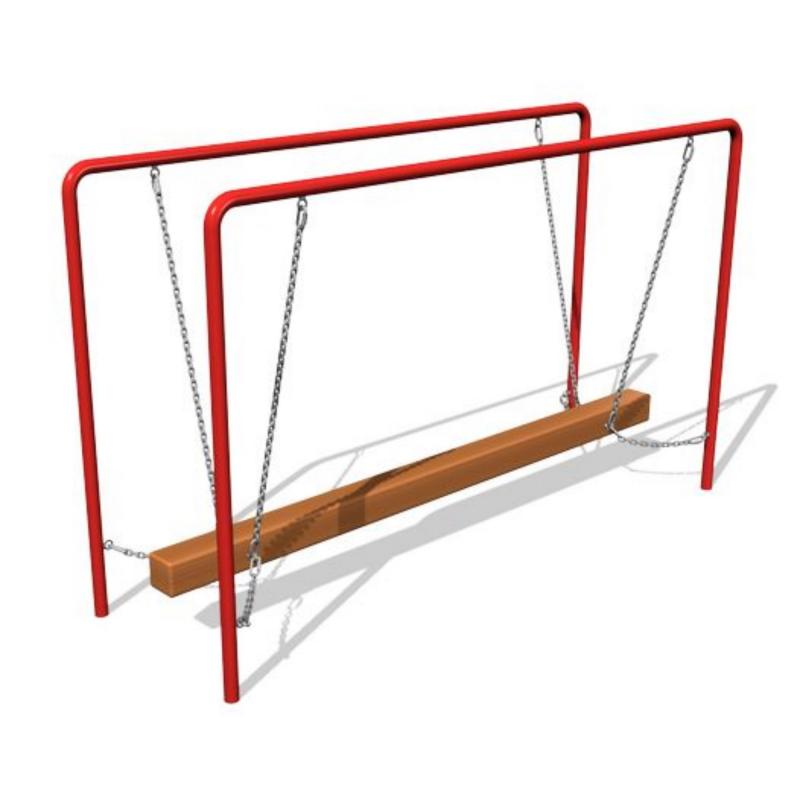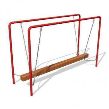 Бревно-балансир «Ручеек» выполнено в виде стальных перил и закрепленного между ними на цепях деревянного бруса. Горизонтальные цепные растяжки, в целях безопасности, ограничивают амплитуду раскачивания снаряда, при этом оставляя ему достаточную степень свободы.