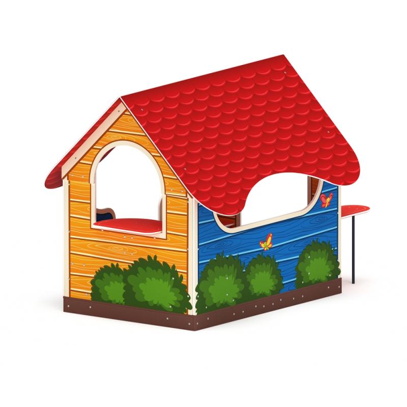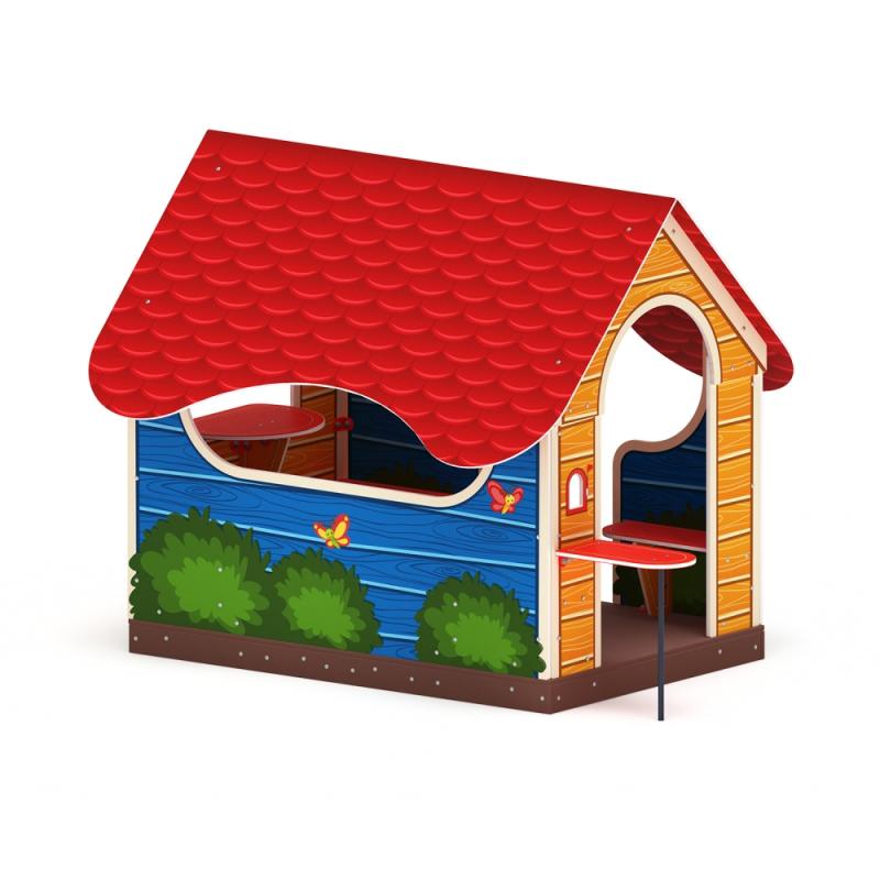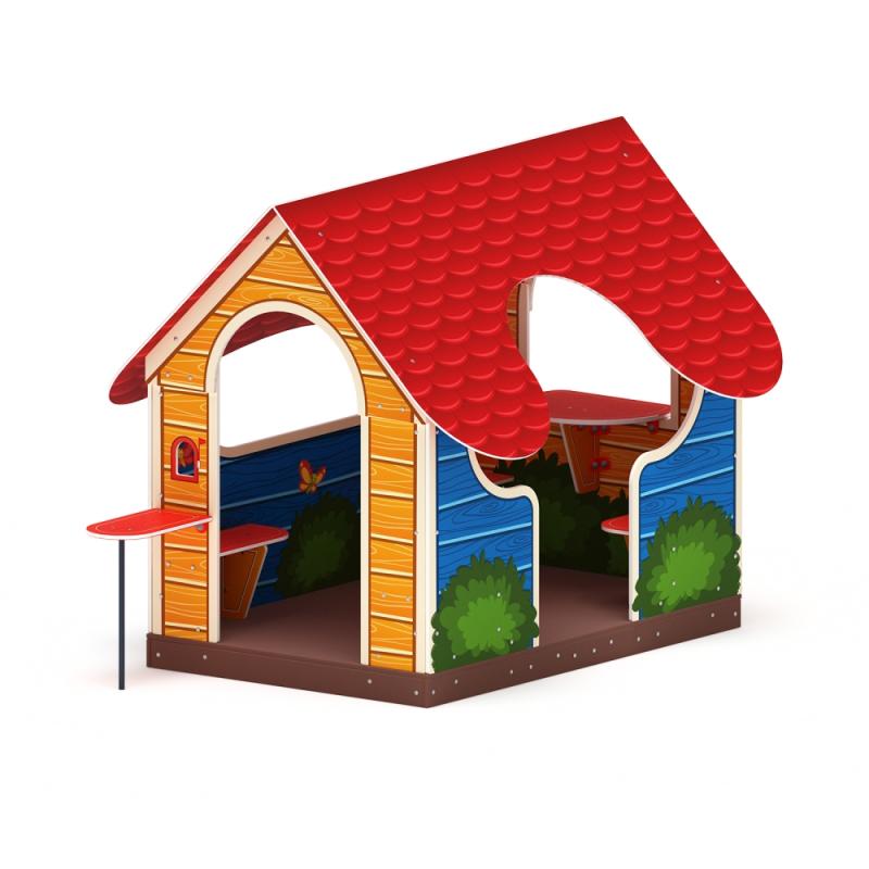 Настоящий коттедж для игр на свежем воздухе - игровой Домик мини 4! Установите Домик на детской площадке, даче или в парке, в детском саду, и вы сможете занять детей на продолжительное время, во время игр в котором, детки развиваются физически, социально и эмоционально. Вместительный домик соберет всех друзей в одну большую компанию. Внутри детки смогут найти одну большую и две маленькие лавки, а также к их услугам есть три разных столика, которые они могут приспособить для своих нужд
