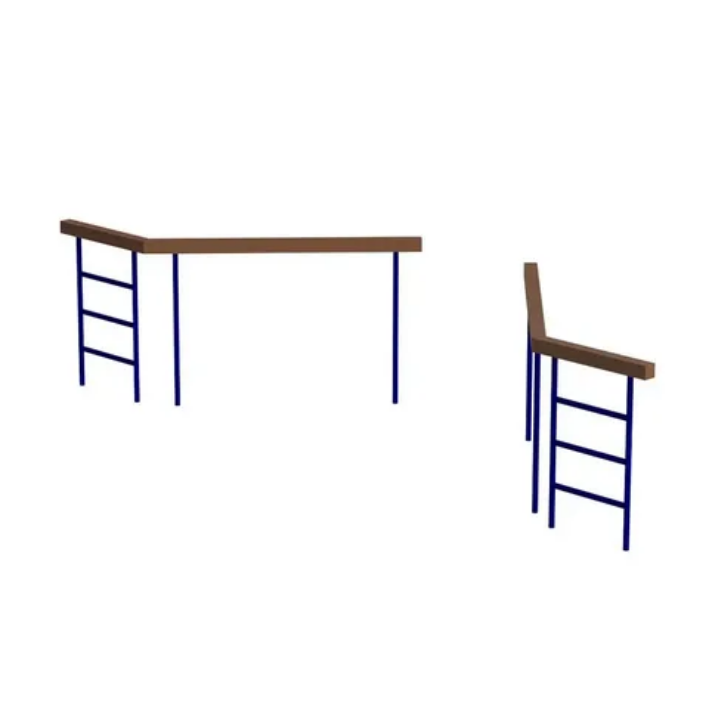 Элемент полосы препятствий «Разрушенный мост» предназначено для занятий на улице для общефизической подготовки, выполнения упражнений на развитие ловкости, силы и координации. Элемент соединяется в один комплекс с «Забором с наклонной доской».