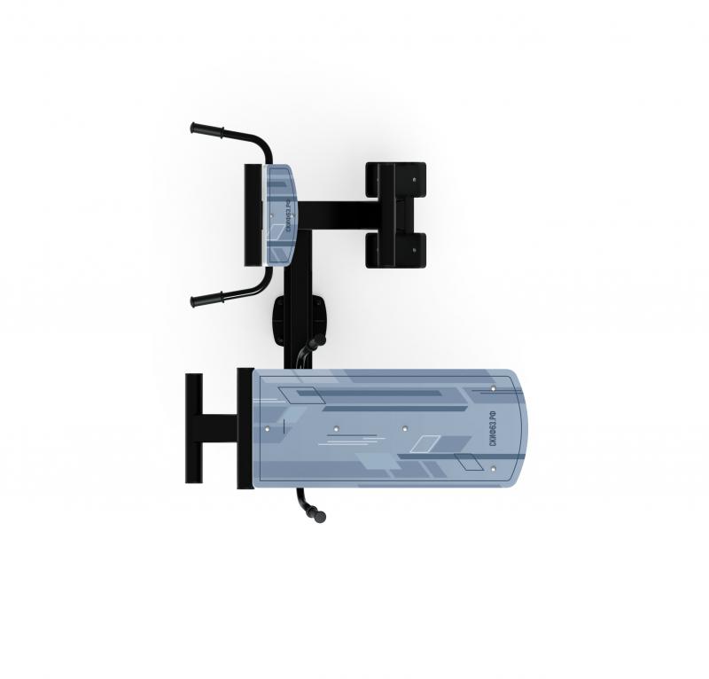 1.Расположитесь на рабочей зоне тренажера, задней частью голеностопа упритесь в специальную планку.