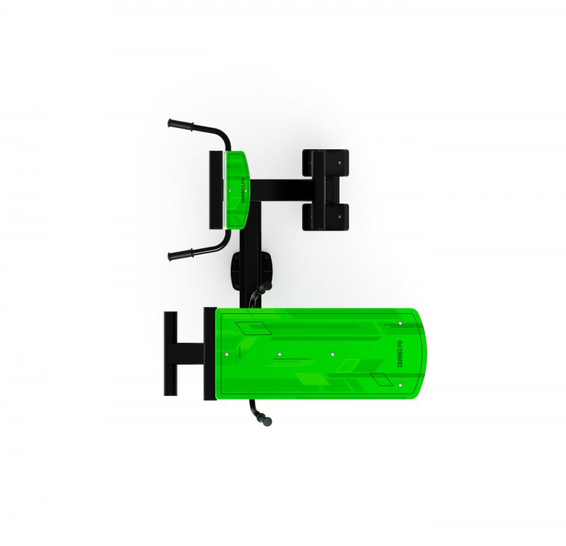 1.Расположитесь на рабочей зоне тренажера, задней частью голеностопа упритесь в специальную планку.
