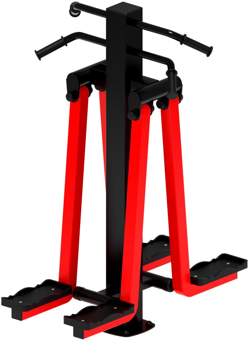 1.Встаньте ногами на специальные площадки. Руками ухватитесь за рукояти на тренажере.