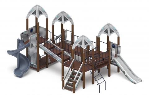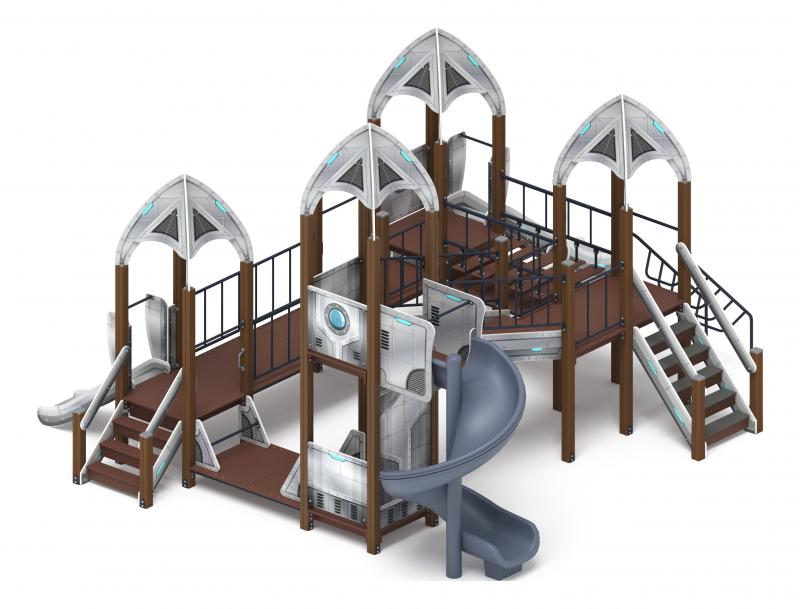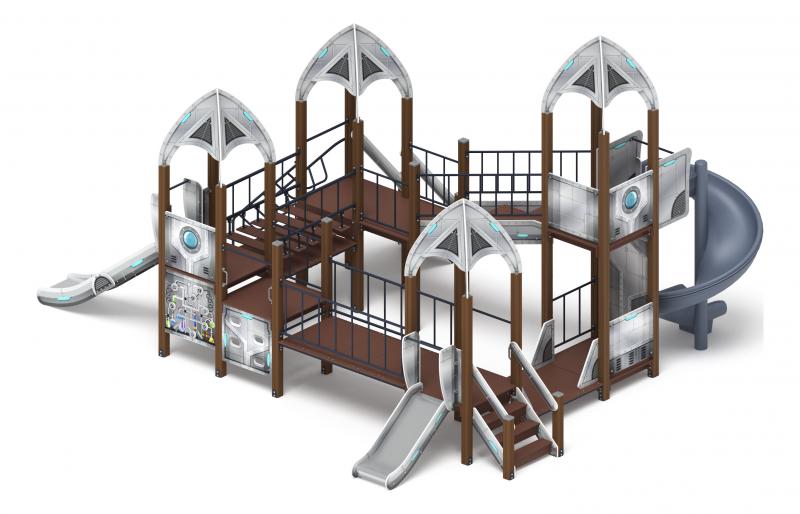 Детский игровой комплекс Космопорт (серый) (винтовой скат) ДИК 2.14.02-01.И1 Н=750, Н=1200, Н=2000