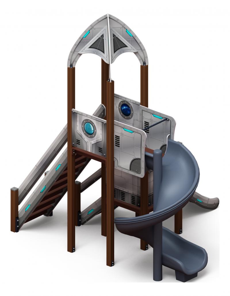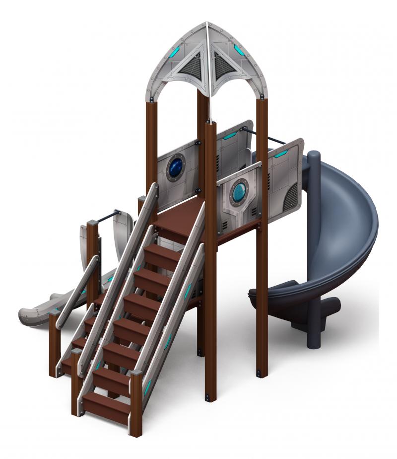 Детский игровой комплекс Космопорт (серый) (винтовой скат) ДИК 2.14.04-01.И1 Н=750, H=2000
