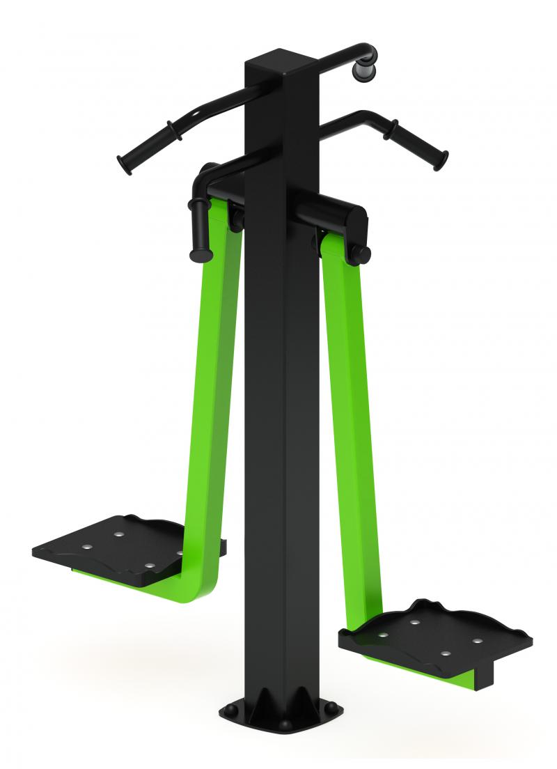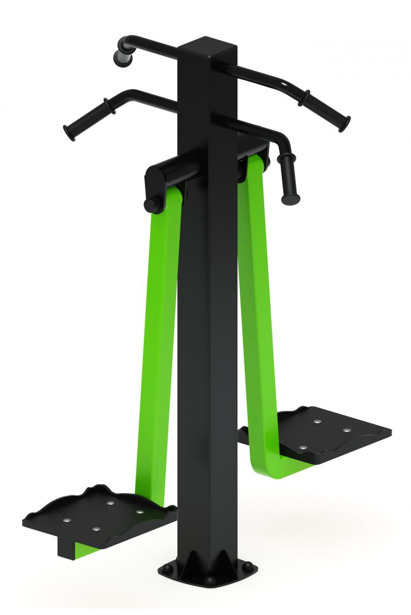 1. Ухватившись руками за рукояти на тренажере, встаньте ногами на прорезиненную платформу.