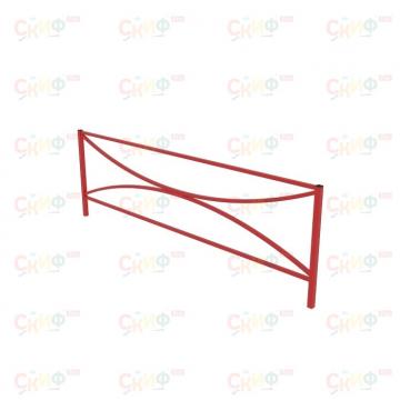Стойки секции выполнены из профильной трубы 40х40, горизонтальные перекладины из профиля 25х25, вертикальные стойки из трубы наружным диаметром 27 мм, металл имеет плавные радиусы, тщательную обработку швов, покрыт порошковой краской в красный цвет. Размеры секции - 2000- длина, 40 - ширина, высота 700 мм