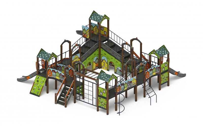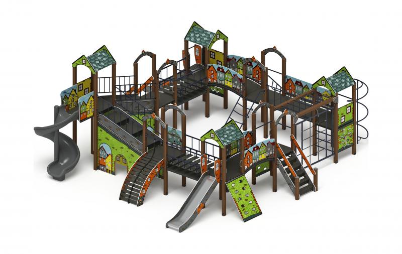 Детский игровой комплекс Остров детства (Город) (Винтовой скат) ДИК 2.01.8.02-11.И1 Н=1200, Н=2000
