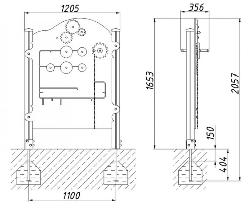 Края дорожки бизиборда покрыты монолитным поликарбонатом, что делает их износостойкими на истирание. Оборудование предназначено для установки на детских игровых площадках.
