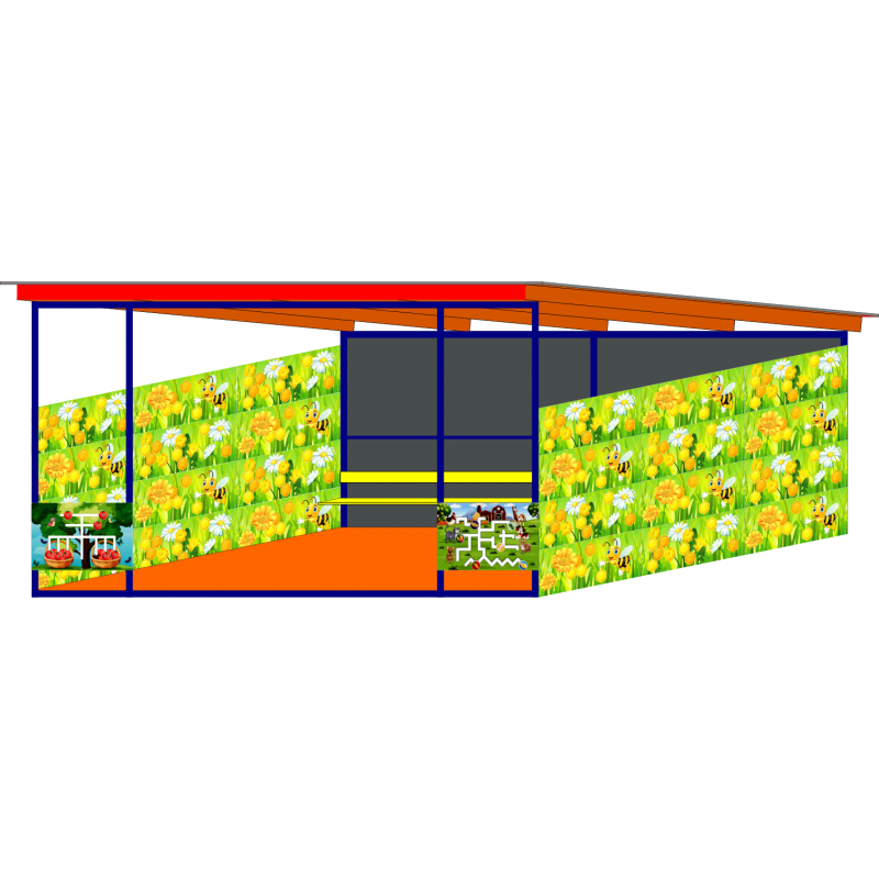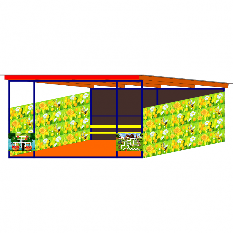 Боковые стены выполнены из влагостойкой фанеры толщиной 18 мм марки ФСФ, с нанесением стилизованного изображения с применением ултрафиолетовой печати, высота стен 1920 мм.