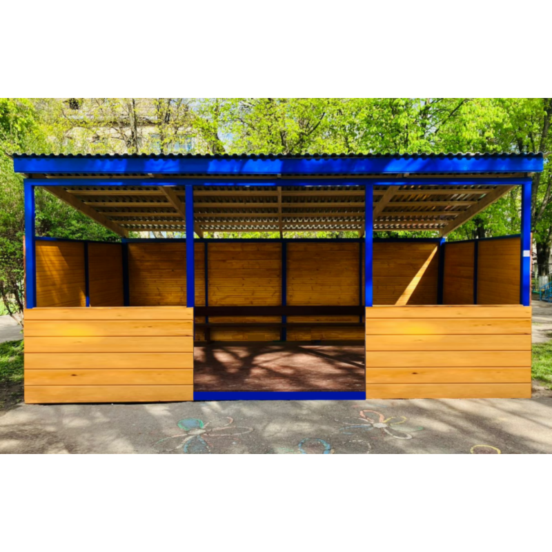 Теневой навес ТН 24.003.001 имеет габаритные размеры 6,27*4,40*2,92 метра, площадь пола - 24 квадратных метров.