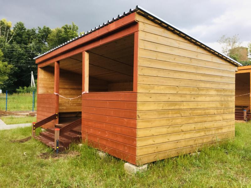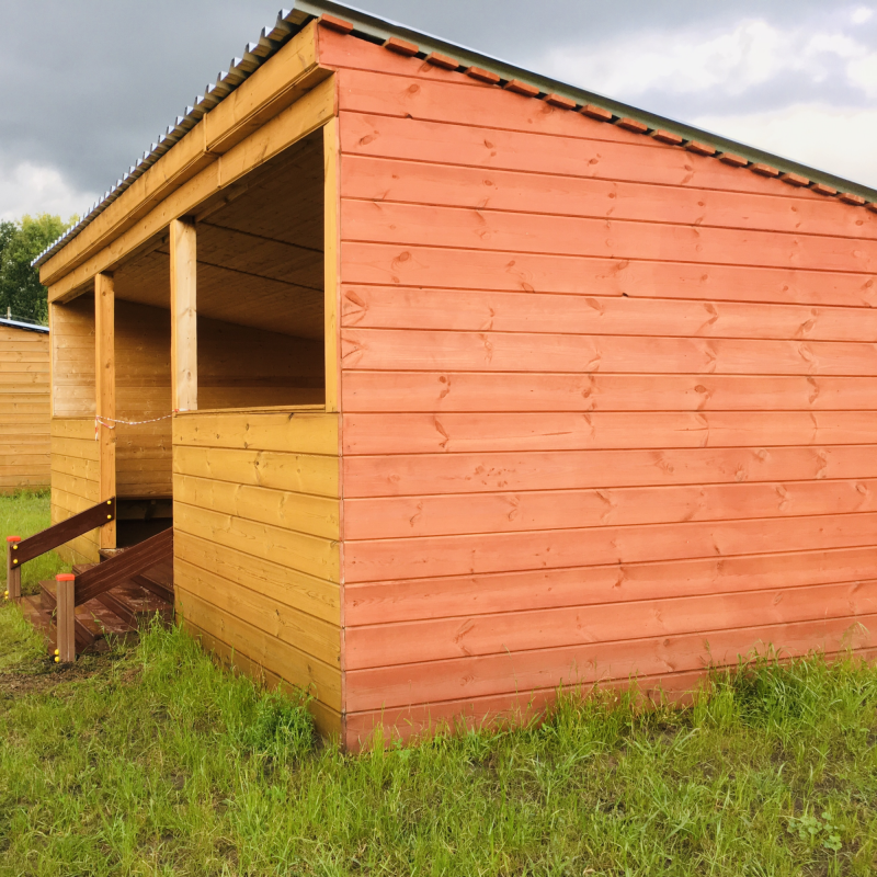 Огнебиозащита дерева на всех этапах монтажа. Пол – деревянная шпунтованная доска 36 мм + половая краска ПФ-266. Кровля – деревянная обрешетка, оцинкованный профлист Н60 0,5 мм.