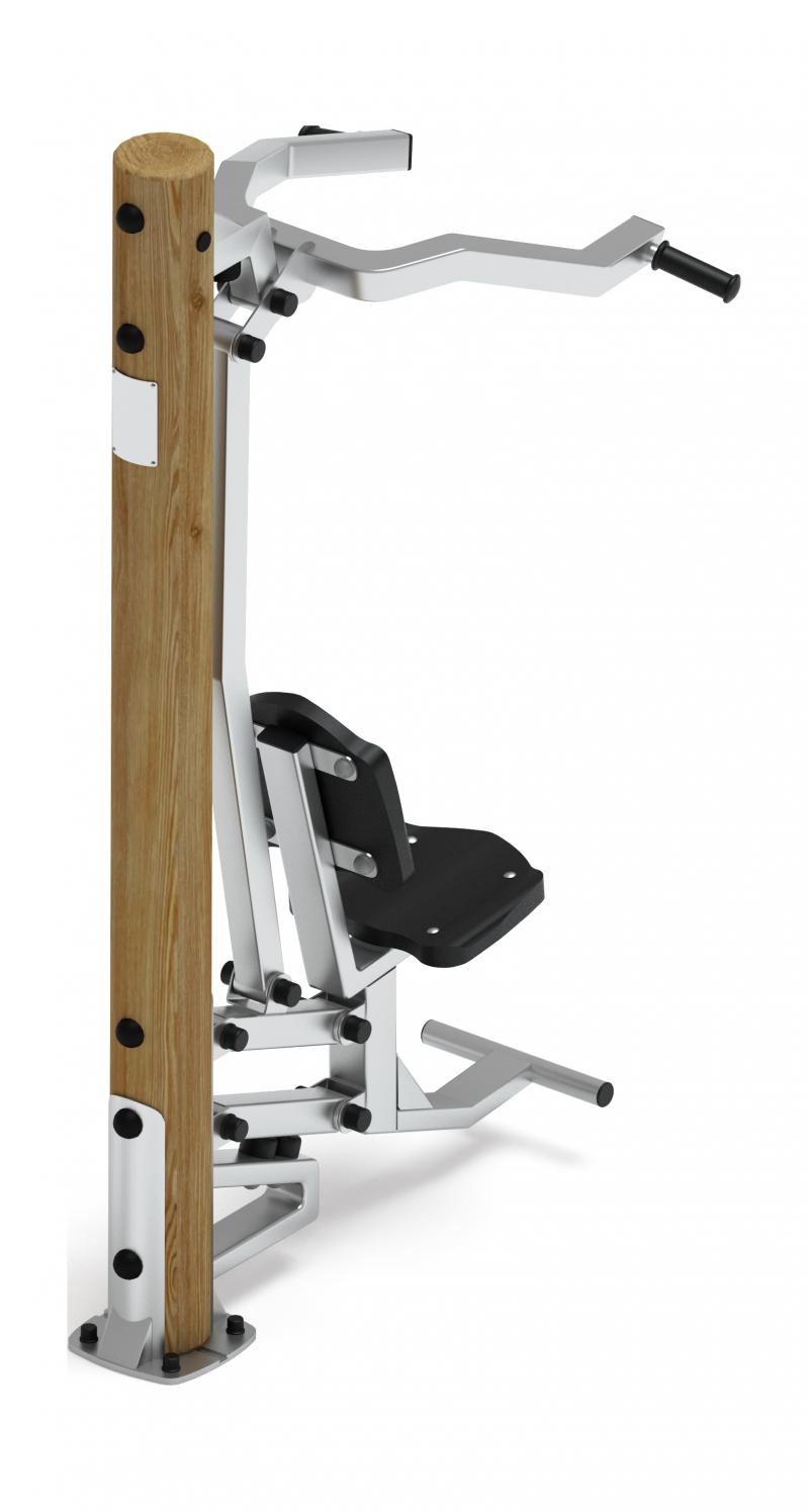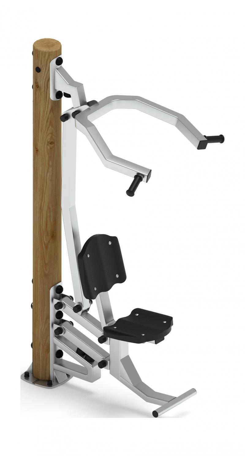Тренажер укрепляет широчайшие мышцы спины, бицепс и задние пучки дельтовидных.