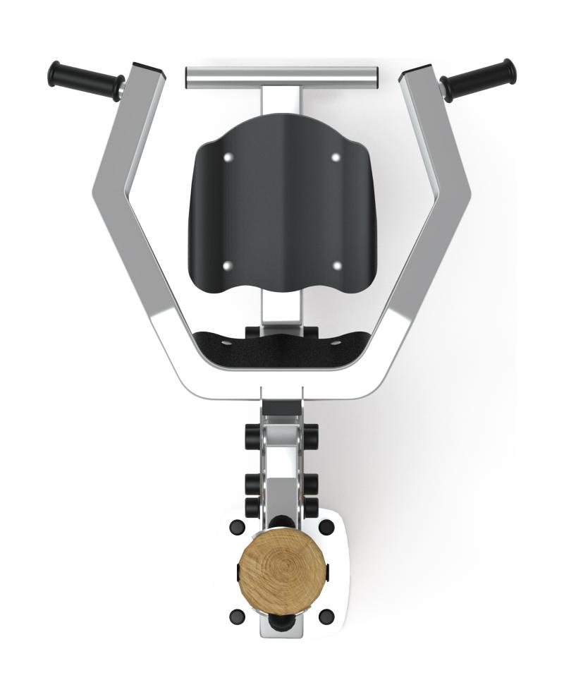 1. Сидя на тренажере, возьмитесь за рукояти.