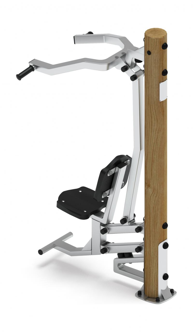 Тренажер укрепляет широчайшие мышцы спины, бицепс и задние пучки дельтовидных.