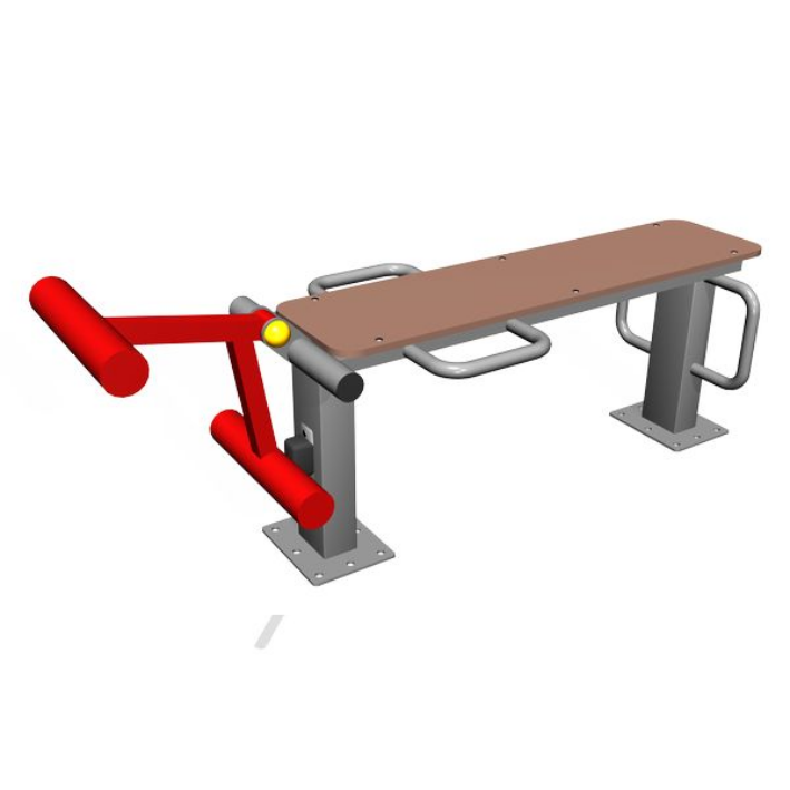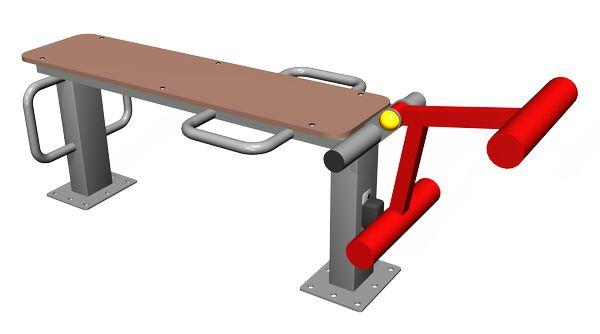 Уличный тренажер предназначен для тренировки бицепса бедра и квадрицепса. В положении сидя занимающийся выполняет упражнения направленные на разгибатели бедра, В положении лежа на животе — на мышцы сгибатели.