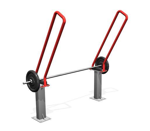 Упражнение выполняется сидя в коляске. Занимающийся подъезжает под штангу, берет ее в руки, и начинает делать жим от груди вверх. Данное оборудование устанавливается на уличных спортивных площадках.