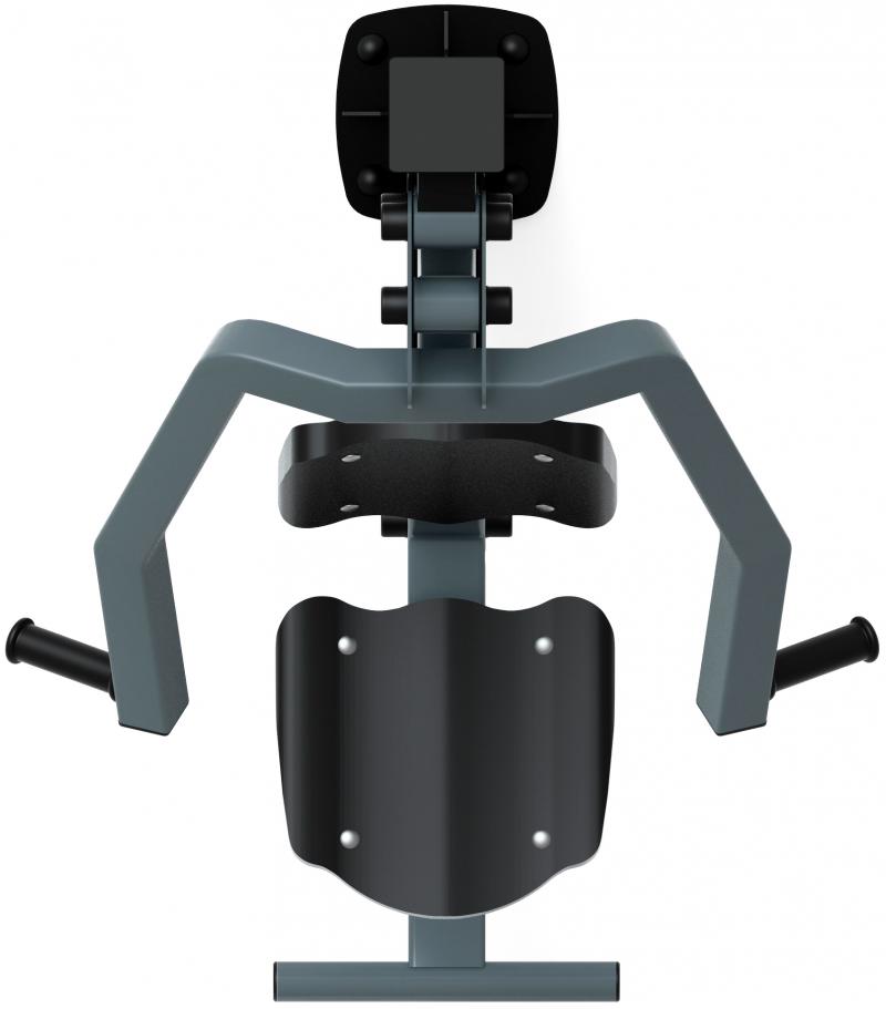 1. Сидя на сиденье тренажера, возьмите рукояти хватом сверху.