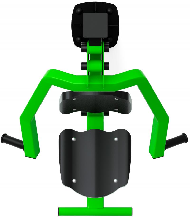 1. Сидя на сиденье тренажера, возьмите рукояти хватом сверху.